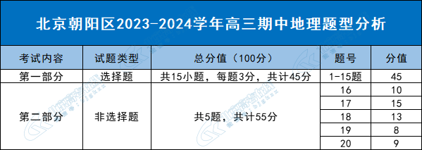 2023-2024学年北京朝阳区高三期中已于11月10日结束,为了帮助同学们了解题型情况,北京高考在线团队特意整理了朝阳区高三期中地理题型分析,详情如下: