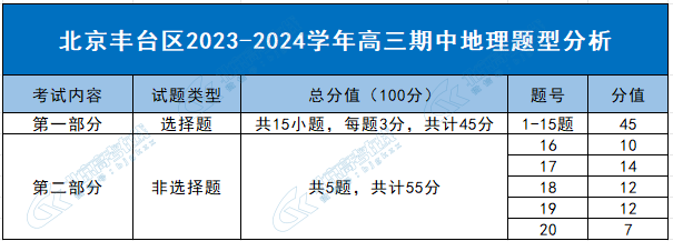 2023-2024学年北京高三期中考试已经结束,为了帮助同学们了解各科目考试题型情况,北京高考在线团队特意整理了2023-2024学年北京丰台区高三期中地理题型分析,详情如下: