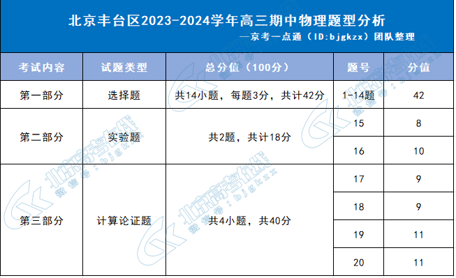 2023-2024学年北京高三期中考试已经结束,为了帮助同学们了解各科目考试题型情况,北京高考在线团队特意整理了2023-2024学年北京丰台区高三期中物理题型分析,详情如下: