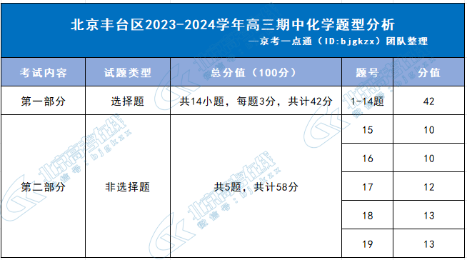 2023-2024学年北京高三期中考试已经结束,为了帮助同学们了解各科目考试题型情况,北京高考在线团队特意整理了2023-2024学年北京丰台区高三期中化学题型分析,详情如下: