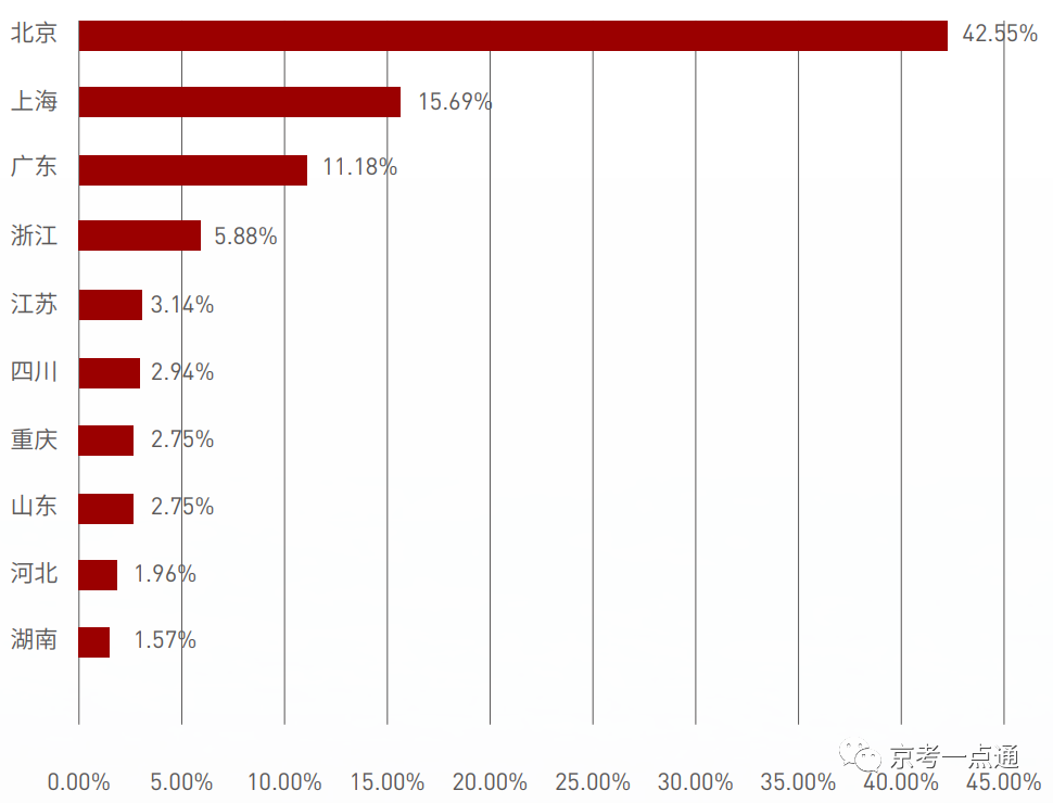 北京大学2022届本科毕业生就业省份中,赴北京、上海、广东就业的人数居前三位,其中42.55%本科毕业生选择北京单位就业。