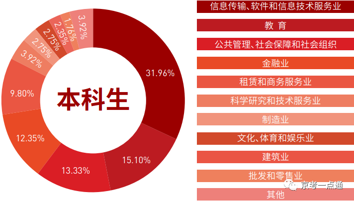 2022届本科毕业生主要在信息传输、软件和信息技术服务业、教育、公共管理、社会保障和社会组织、金融等行业就业,占本科生毕业生就业总人数的72.74%。