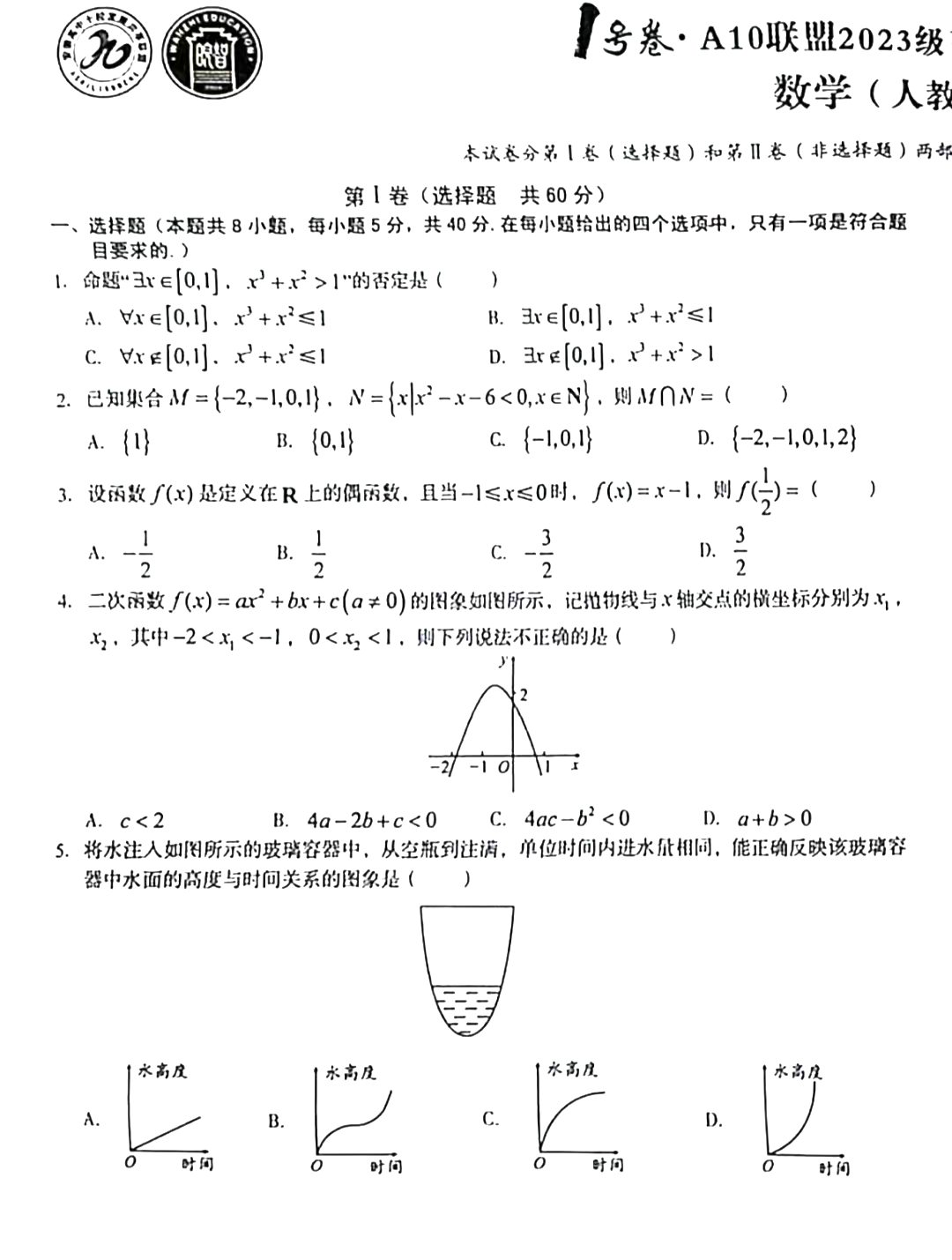全科试题:2024安徽A10联盟高一上学期期中考试各科试题及答案汇总