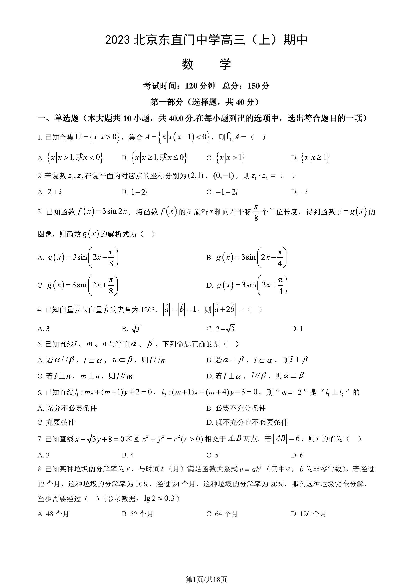 2024届北京东城区高三期中已结束。为了方便同学们查找相关试题、答案,北京高考在线团队整理了东直门中学高三期中数学试题答案,同学们可以下载练习!详情如下: