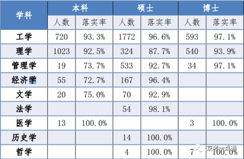 本科毕业生医学毕业去向落实率100%,工学93.3%、理学92.5%、文学75%。