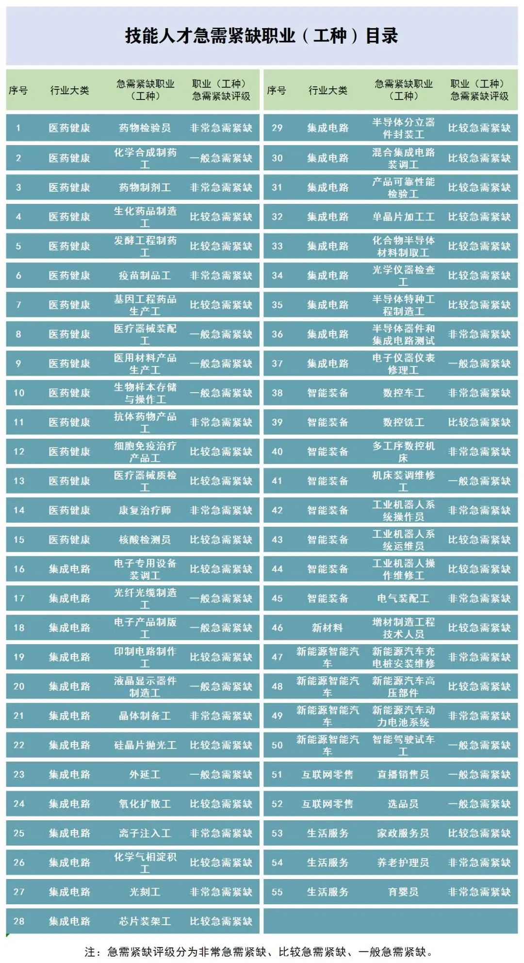 将职业(工种)按照急需紧缺程度进行评级,分为一般急需紧缺、比较急需紧缺、非常急需紧缺3个等级,快来看看哪些职业(工种)很紧缺吧~