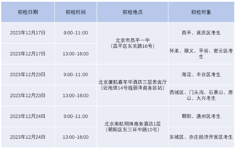 2024年度中国南方航空股份有限公司招飞北京地区初检安排