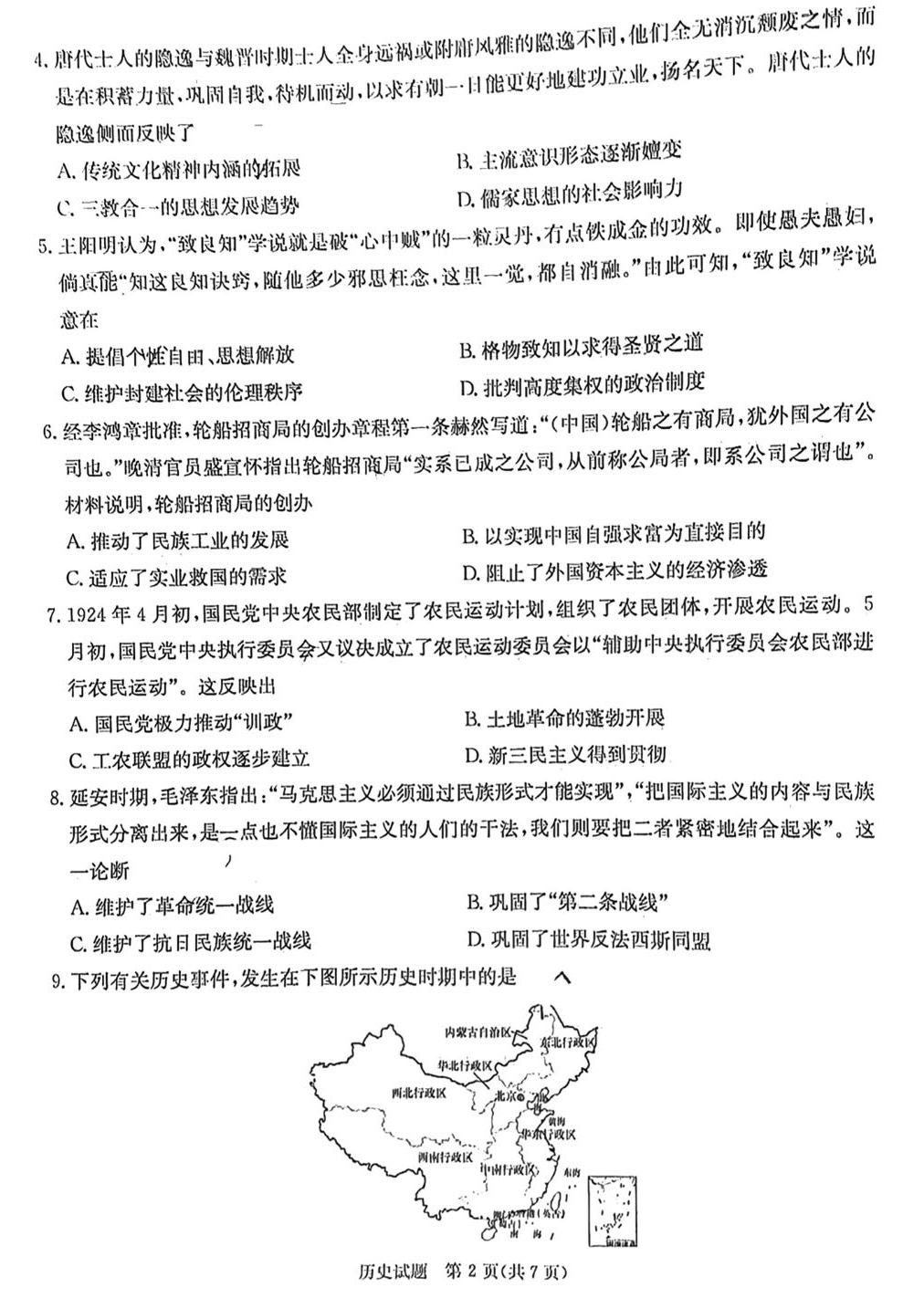 本文整理了2024届高三第一次八省联考(T8联考)历史试题及答案,供考生参考。