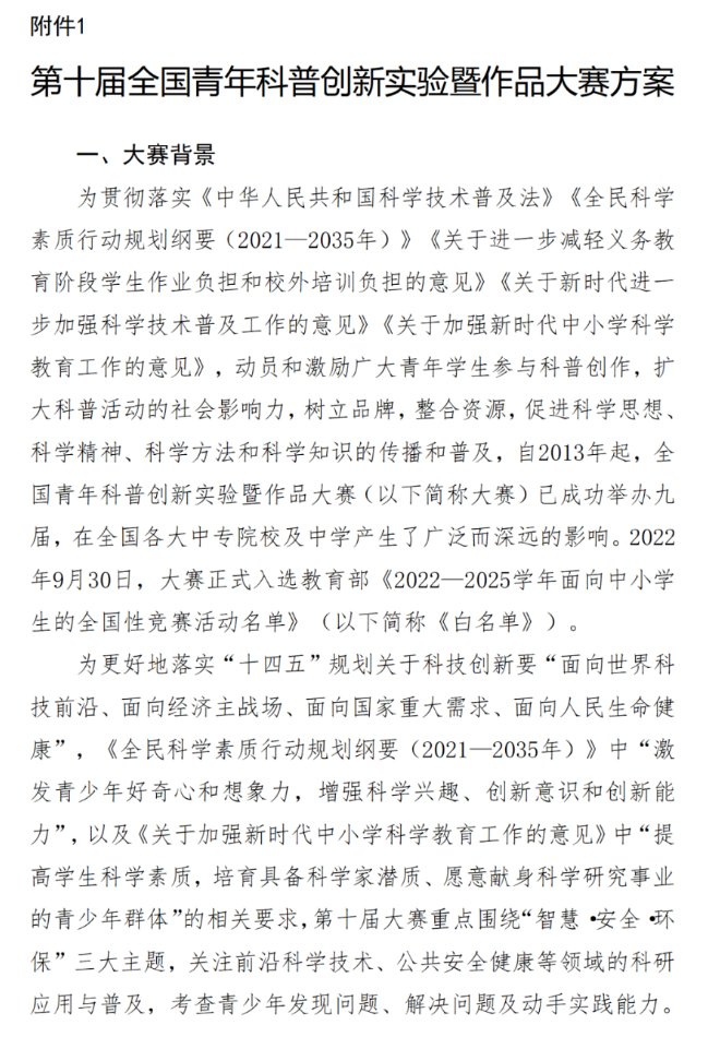 1.第十届全国青年科普创新实验暨作品大赛方案
