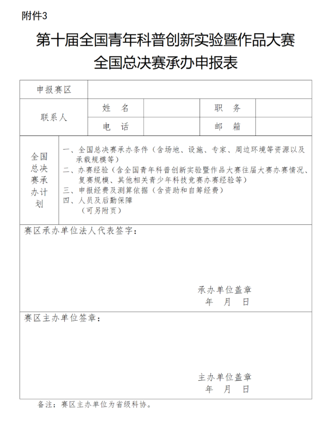 3.第十届全国青年科普创新实验暨作品大赛全国总决赛承办申报表