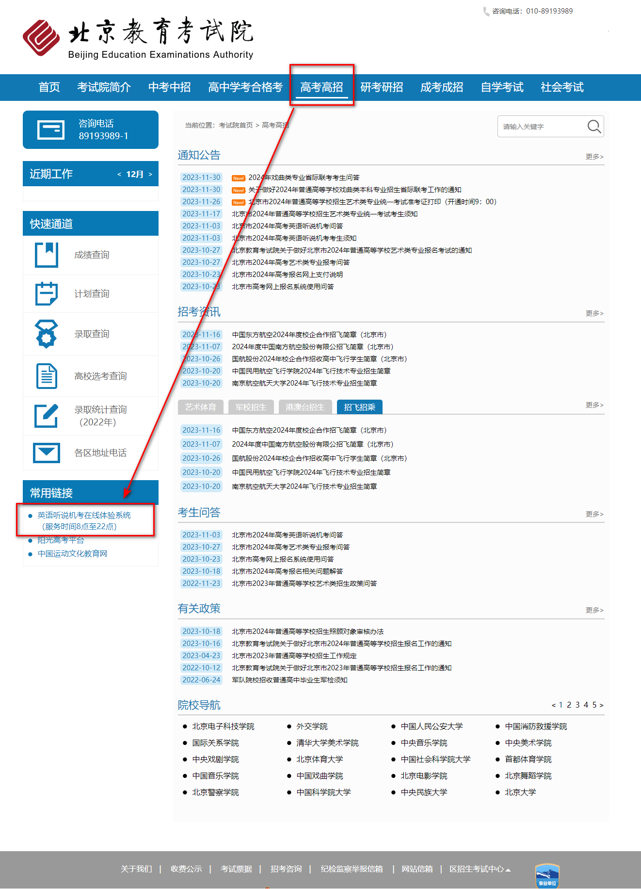 2024年高考第一次英语听说考试于2023年12月16日进行,北京教育考试院开通了2024北京高考英语听说机考考试体验系统,考生可进行下载练习。北京高考在线分享了2024北京高考英语听说机考考试系统入口,听说机考系统使用说明的相关内容,供考生参考。