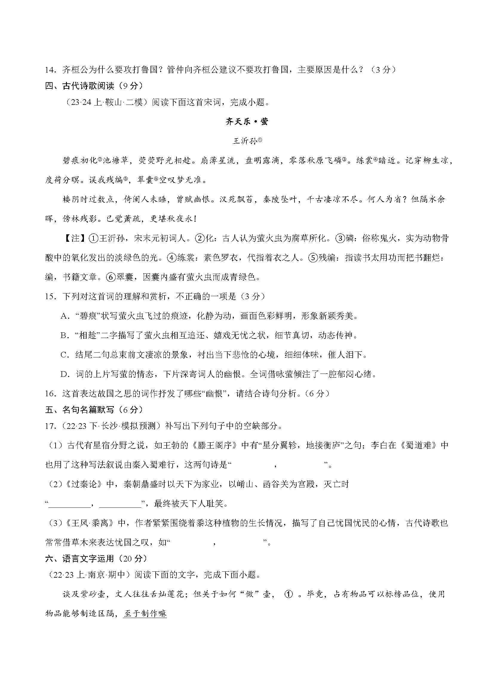 黄金卷08-备战2024年高考语文模拟卷试题及答案(新高考七省专用)