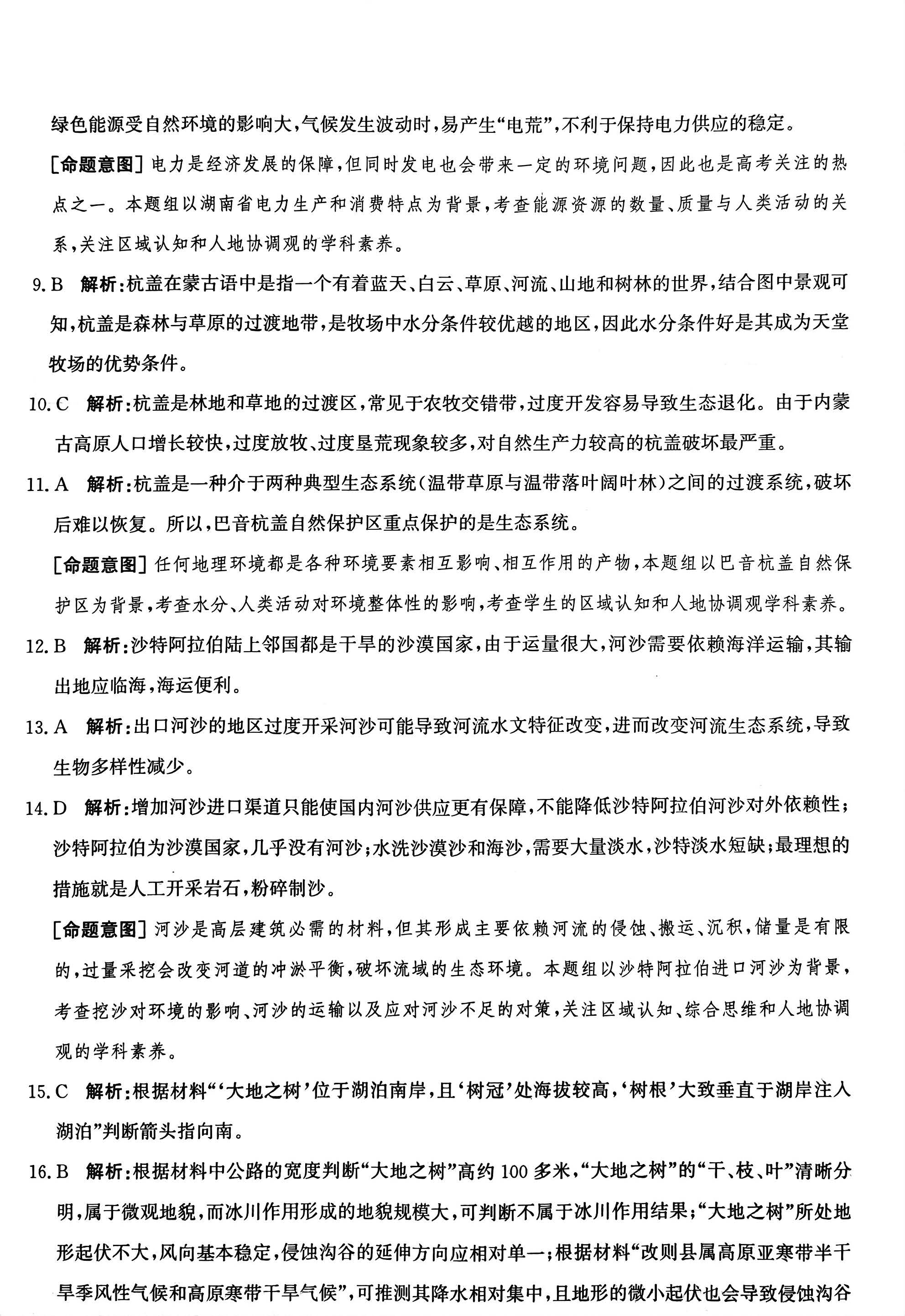 河北省2024年普通高中学业水平选择性考试模拟地理参考答案