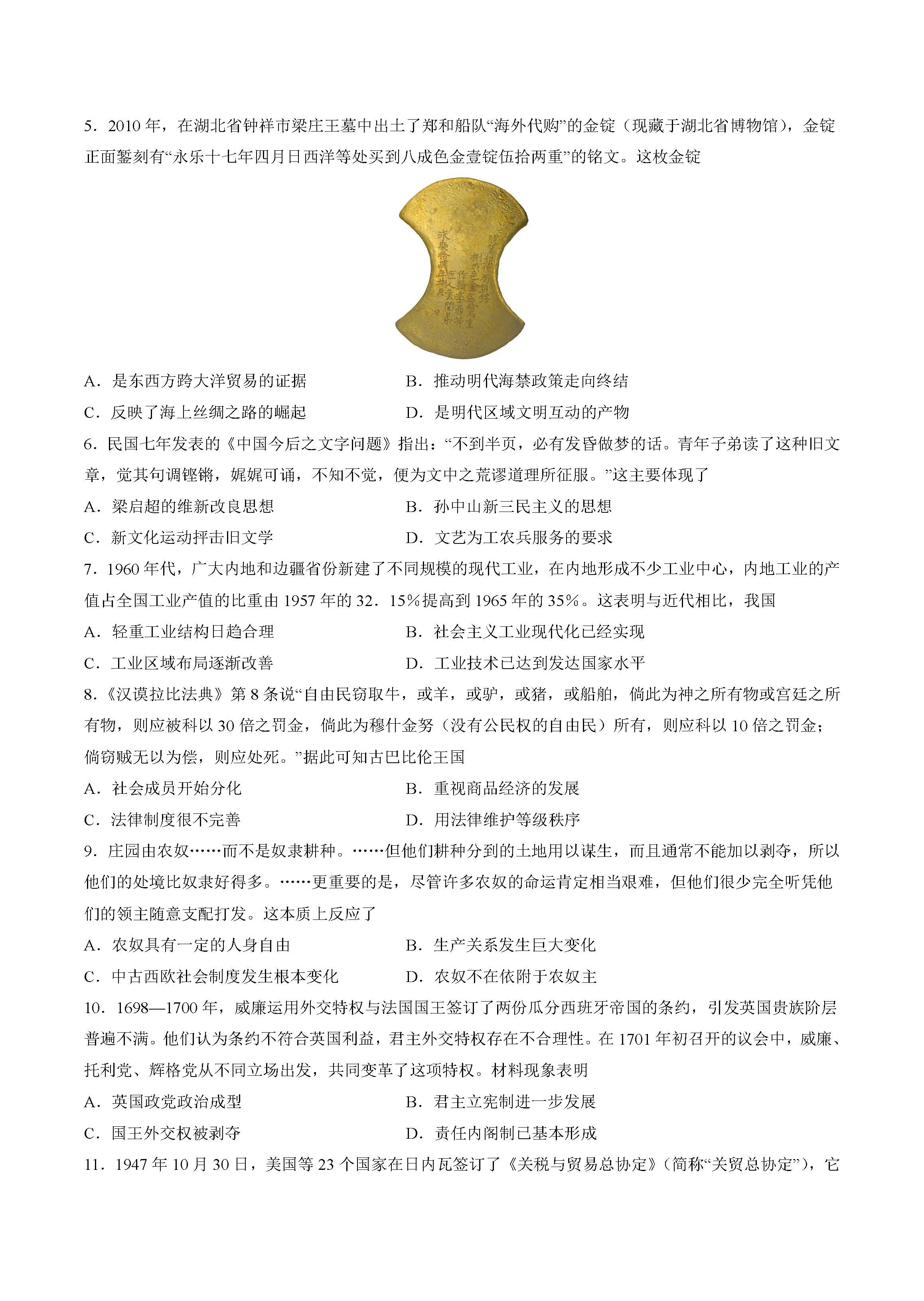 北京高考在线网站整理了【赢在高考·黄金8卷】备战2024年高考历史模拟卷(全国卷专用-全国卷新教材)黄金卷02,分享给大家下载练习。