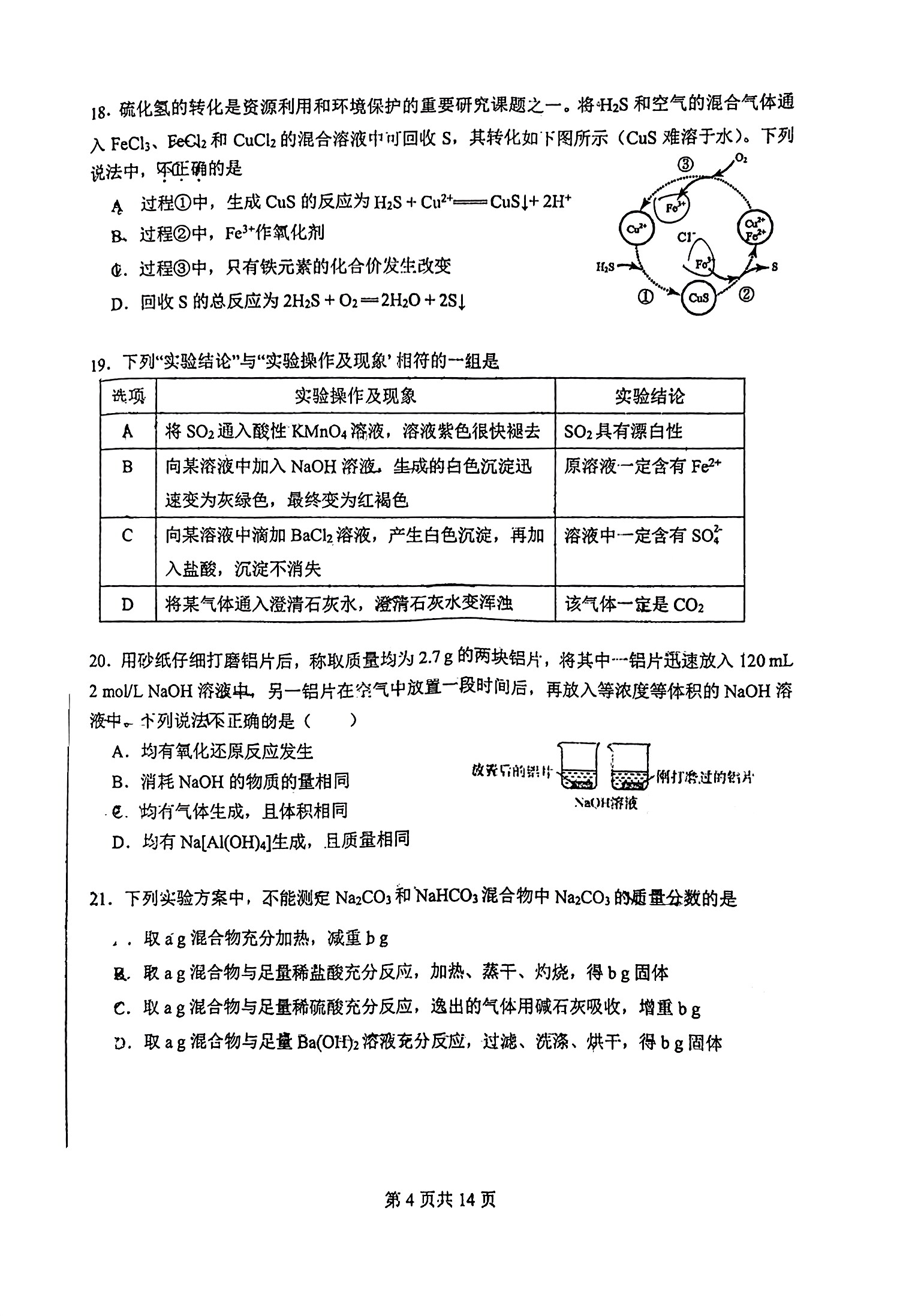 本文整理了2023北京一零一中高一12月统练四化学试题及答案,分享给同学们下载练习!