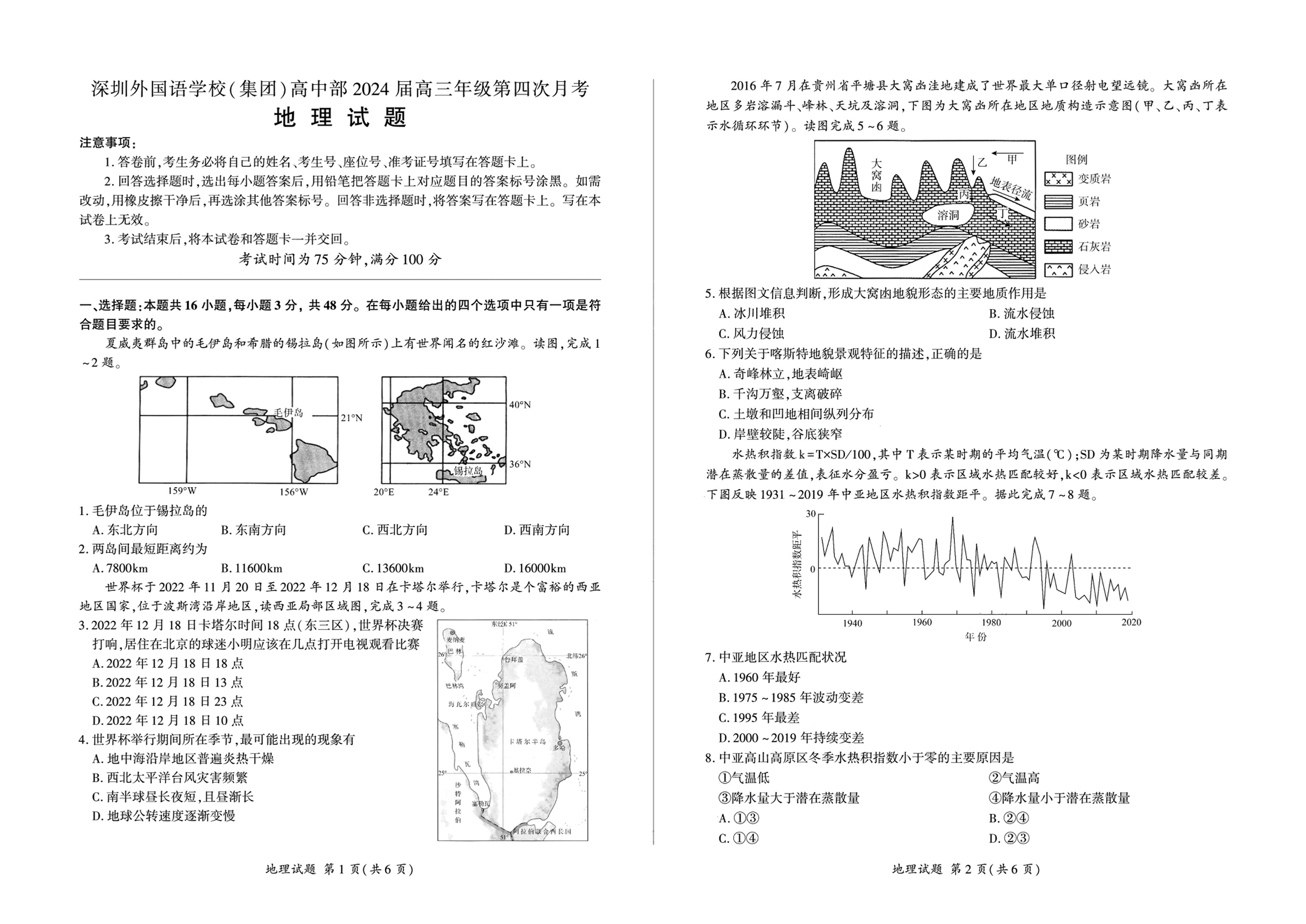 12月上旬,【百师联盟】2024届广东高三(执信、深外、育才等学校)12月联考如期举行,为方便大家练习本套试题,北京高考在线团队整理了各科试题及答案,本文一起来看地理试题。