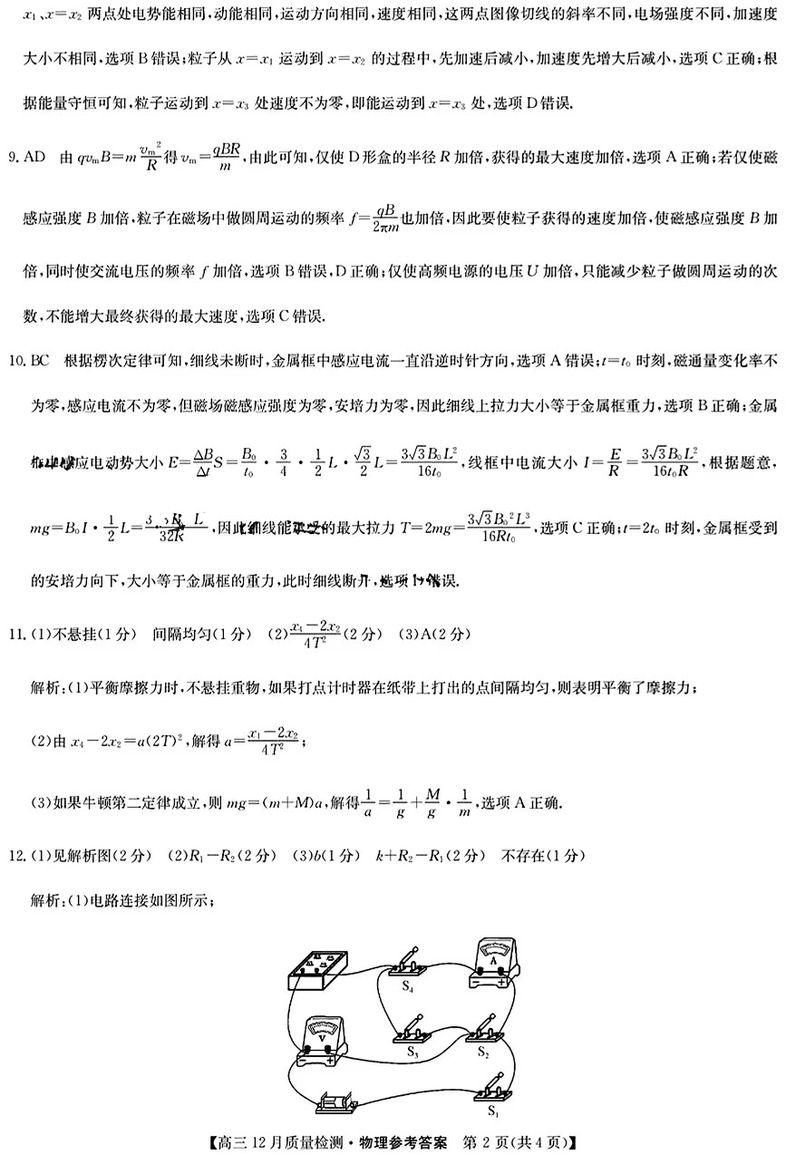 2024九师联盟高三12月联考物理试题及答案(新教材L)