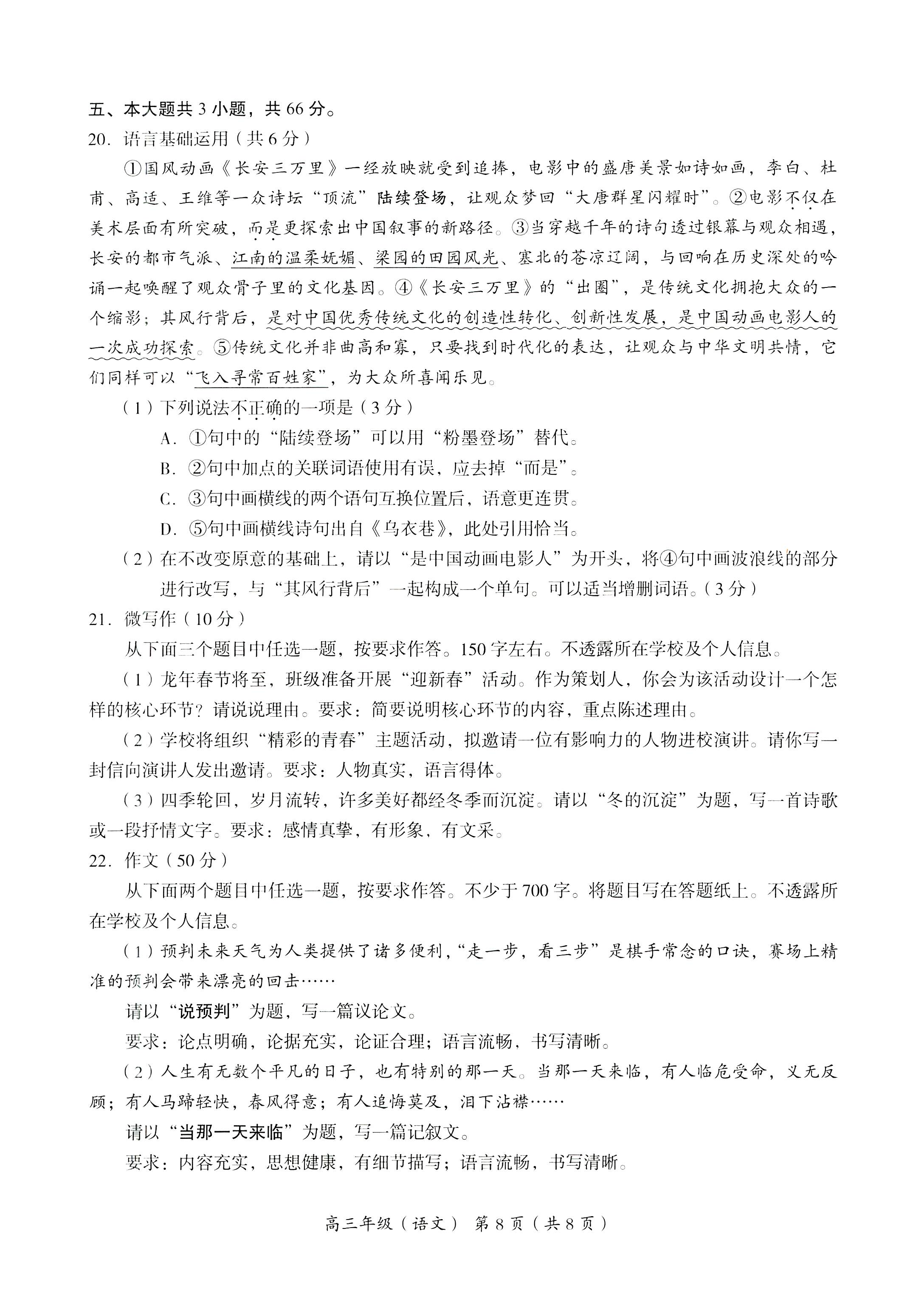 2023-2024学年北京海淀区高三期末语文试题及答案