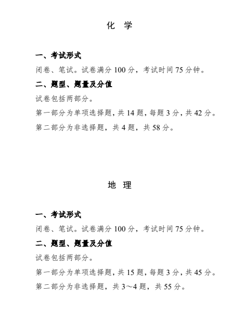 重庆市普通高中学业水平选择性考试试卷结构(2024 年版)