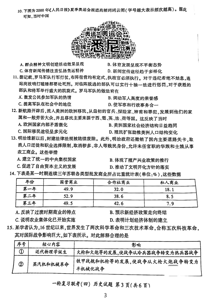 2024届百师联盟高三12月一轮复习联考(四)安徽卷历史试题及答案