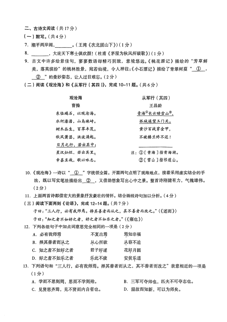 2023-2024学年北京海淀区初三期末语文试题及答案