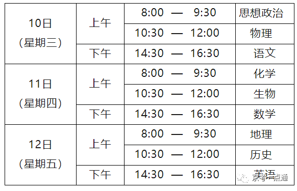 合格考实行一年两考。2024年第一次普通高中学业水平合格性考试于2024年1月10日至12日进行,第一次合格考只能高二和高三的同学参加,考试科目为语文、数学、英语、思想政治、历史、地理、物理、化学、生物。具体考试安排如下↓↓↓