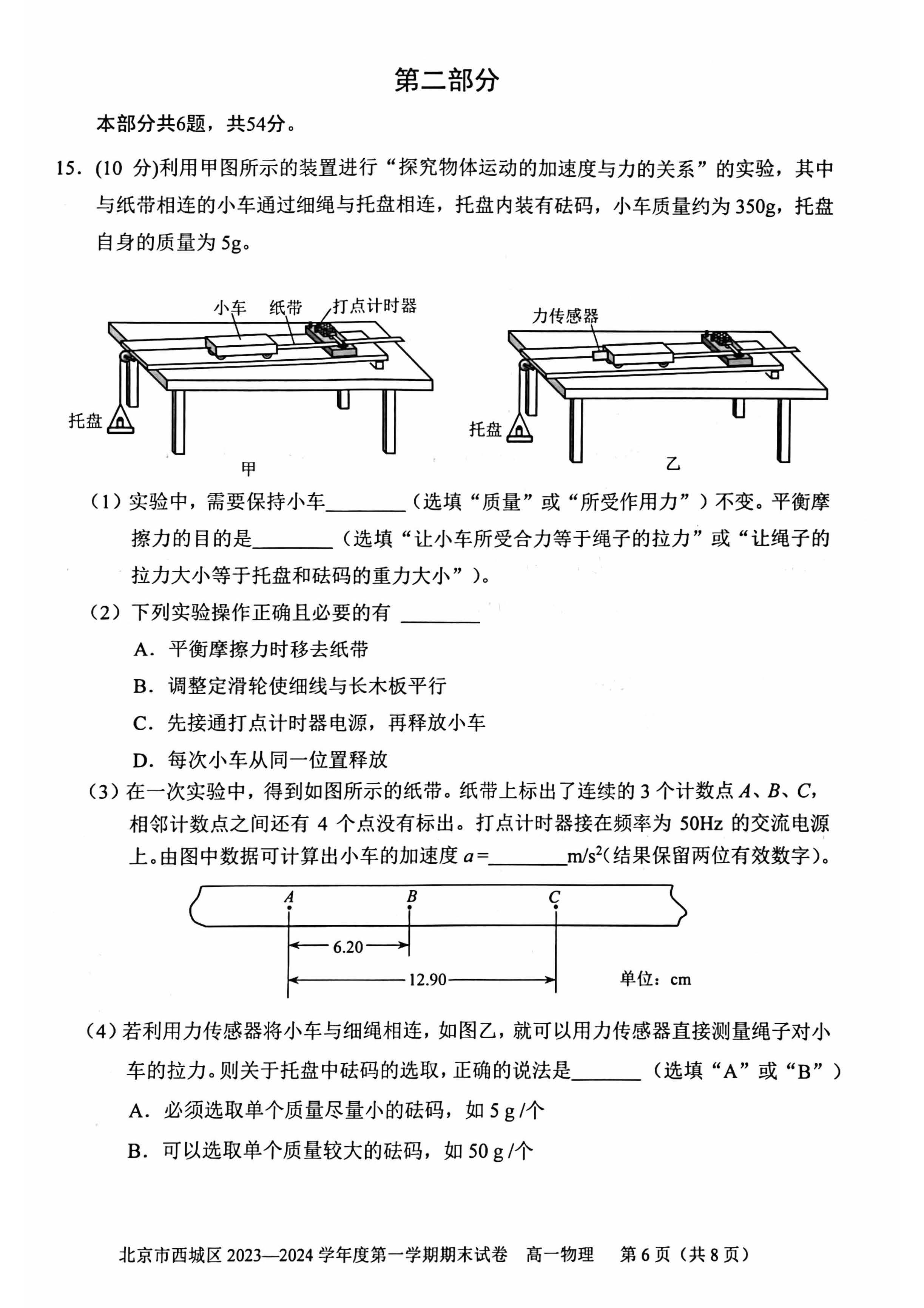 2023-2024学年北京西城区高一上学期期末物理试题及答案