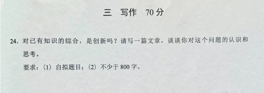 作文题目紧扣“创新”这一时代话题,引导考生结合自身的学习和生活经验,思考知识与个人发展、社会进步、时代需求之间的紧密联系,深入探究传承与创新的关系,激发考生的创新意识与社会责任感。