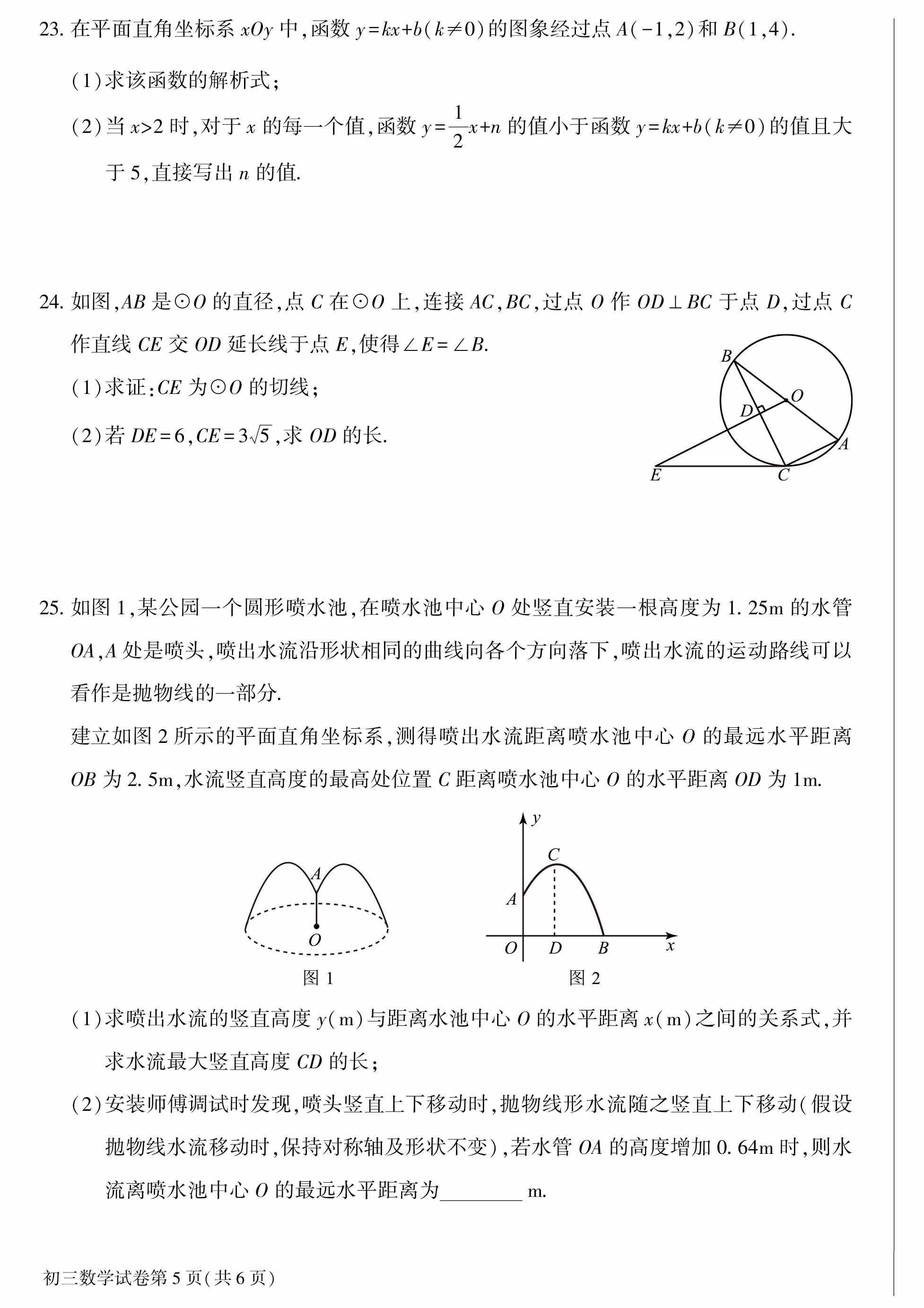2023-2024学年北京大兴区初三期末数学试题及答案