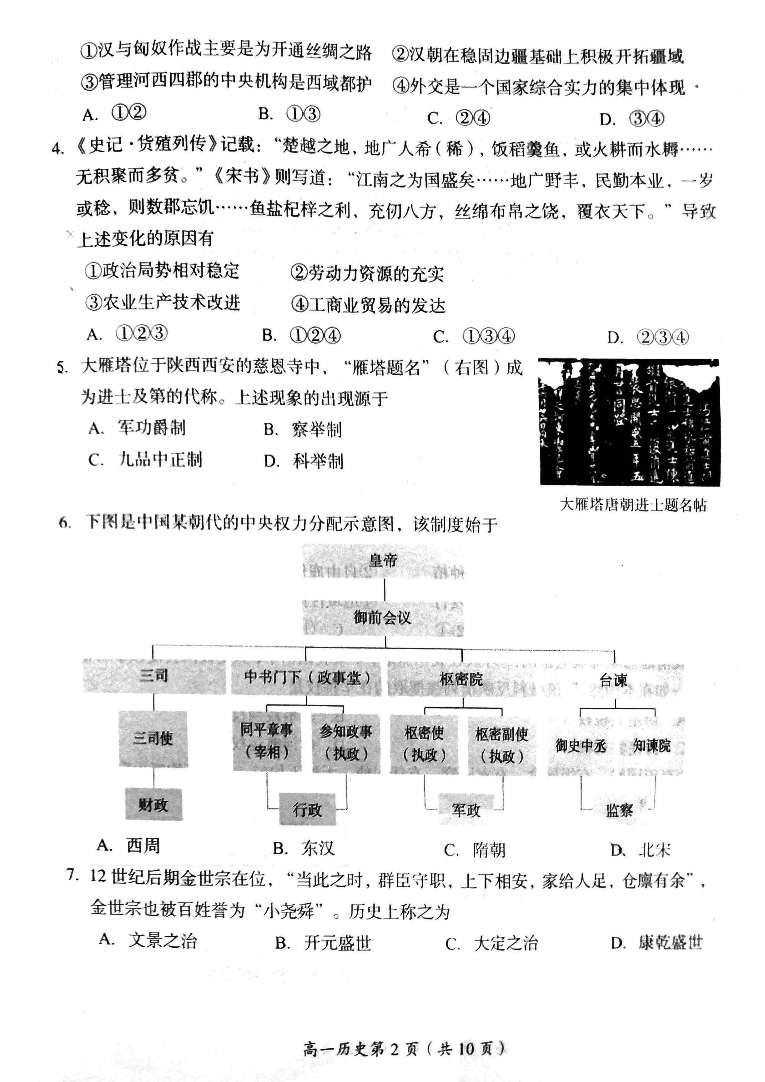 2023-2024学年北京房山区高一上学期期末历史试题及答案