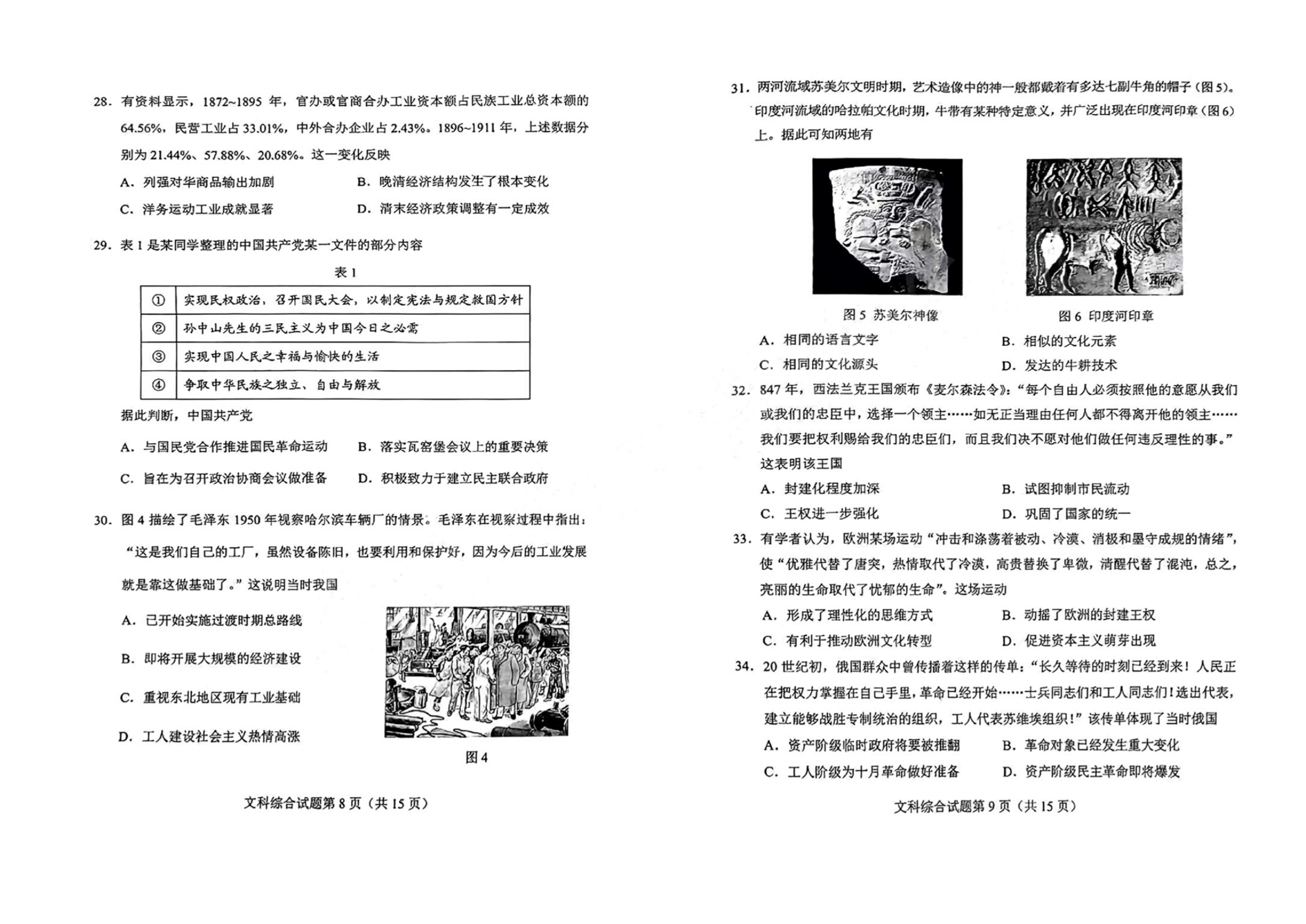 2024新高考七省联考(九省联考)文科综合试题(河南省)