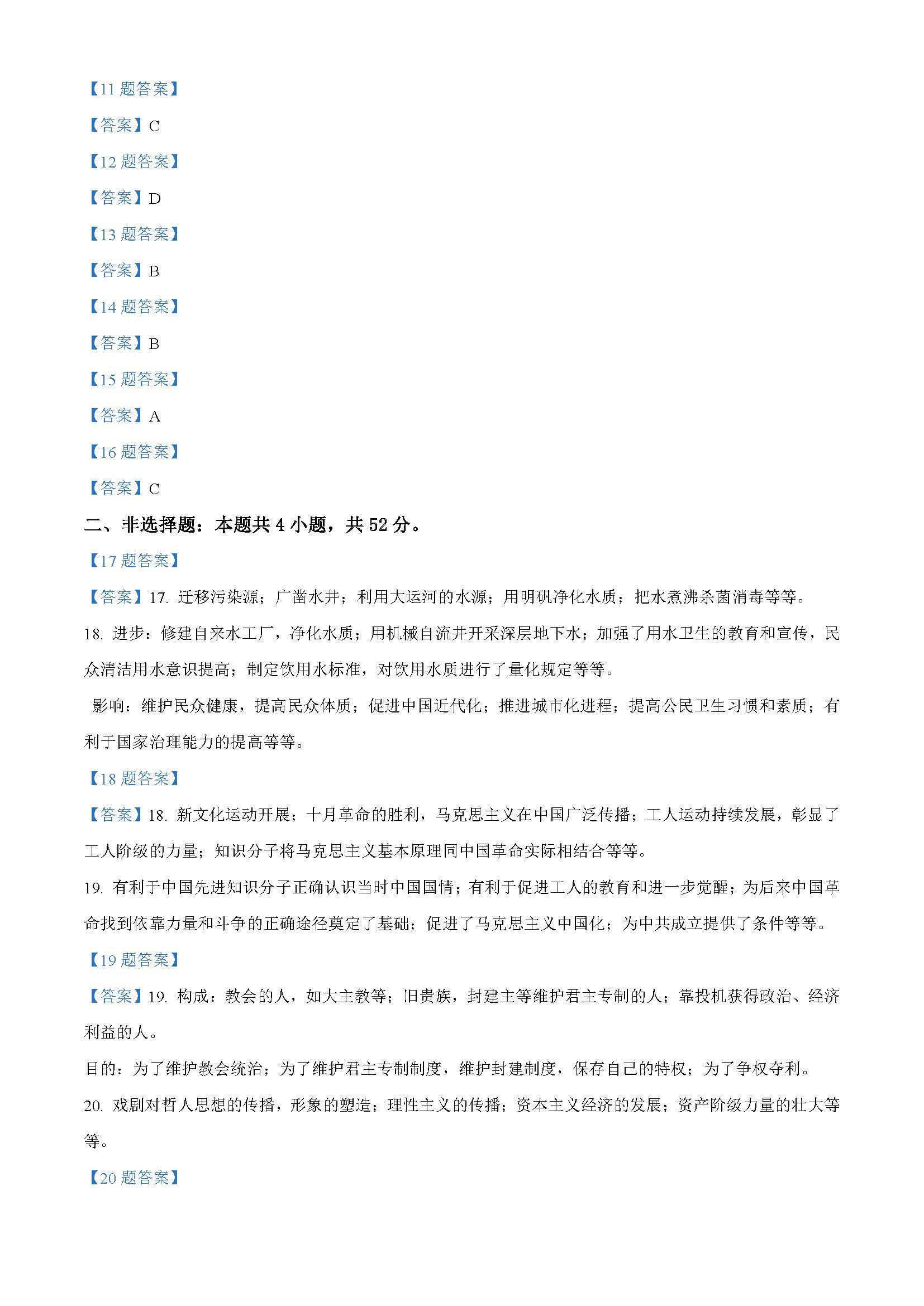 2024新高考七省联考(九省联考)历史答案(吉林省)