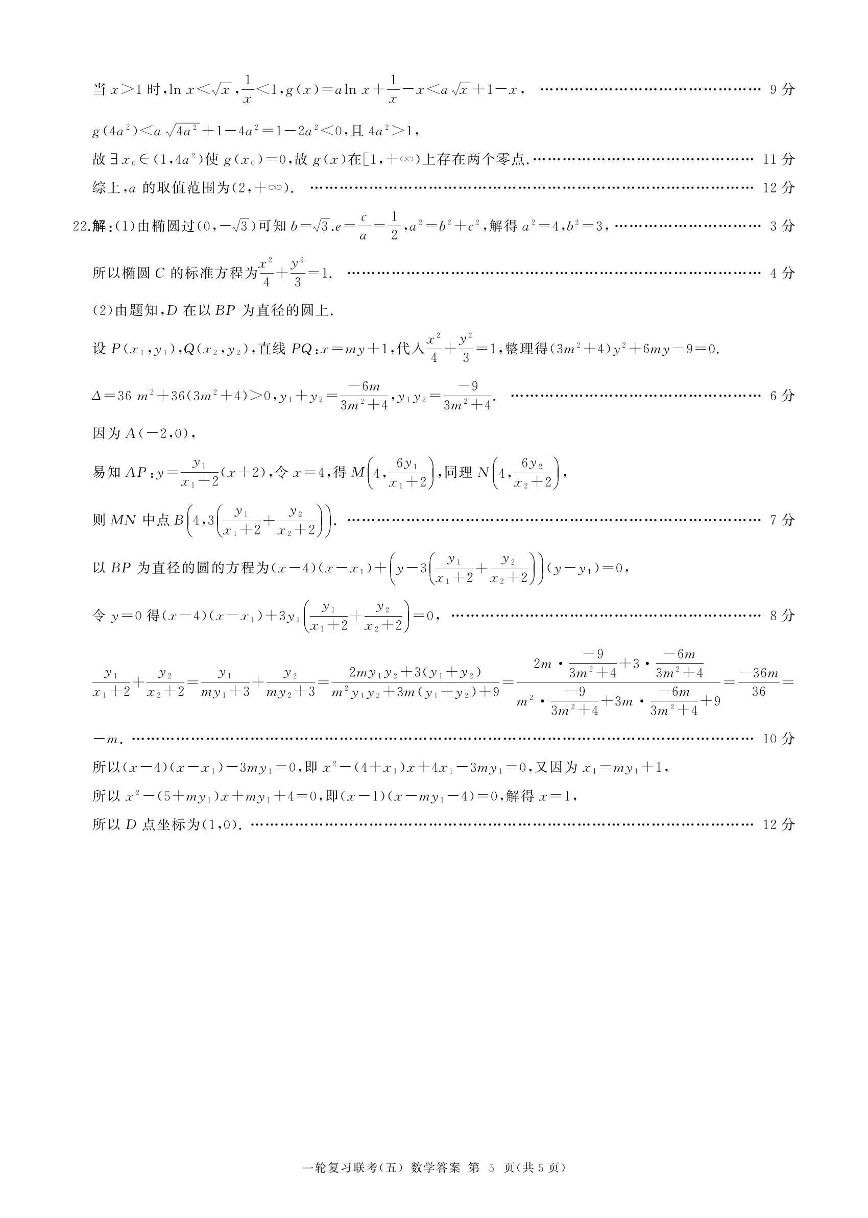 2024届百师联盟高三1月一轮复习联考(五)数学试题及答案