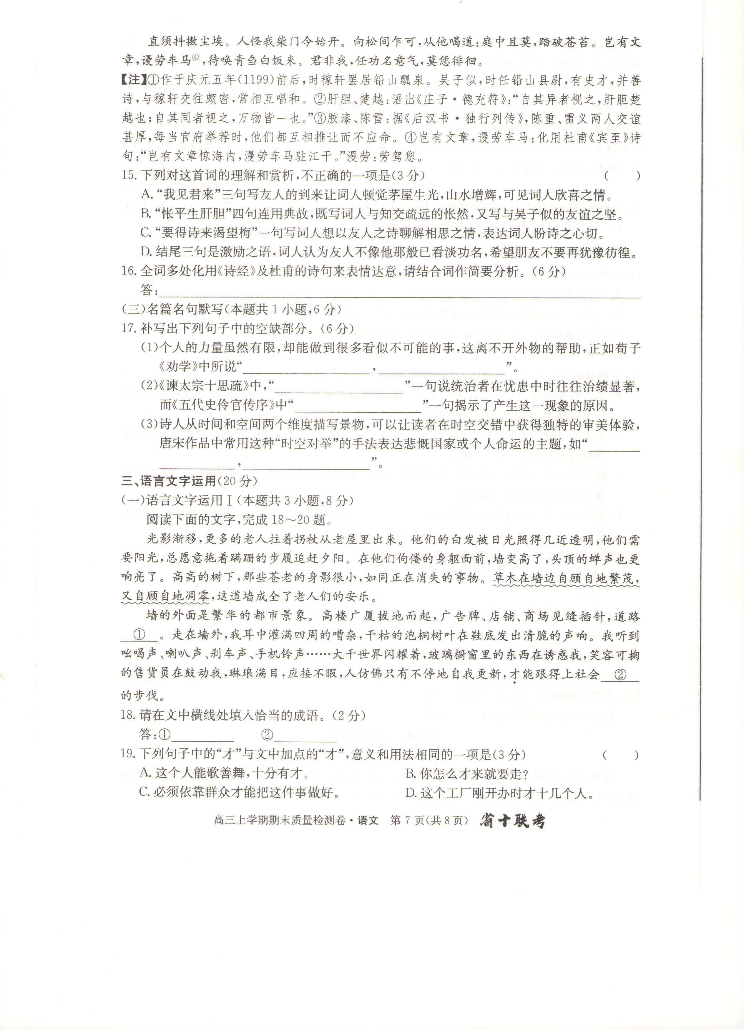 安徽合肥一中2024届高三期末考试(省十联考)语文试题