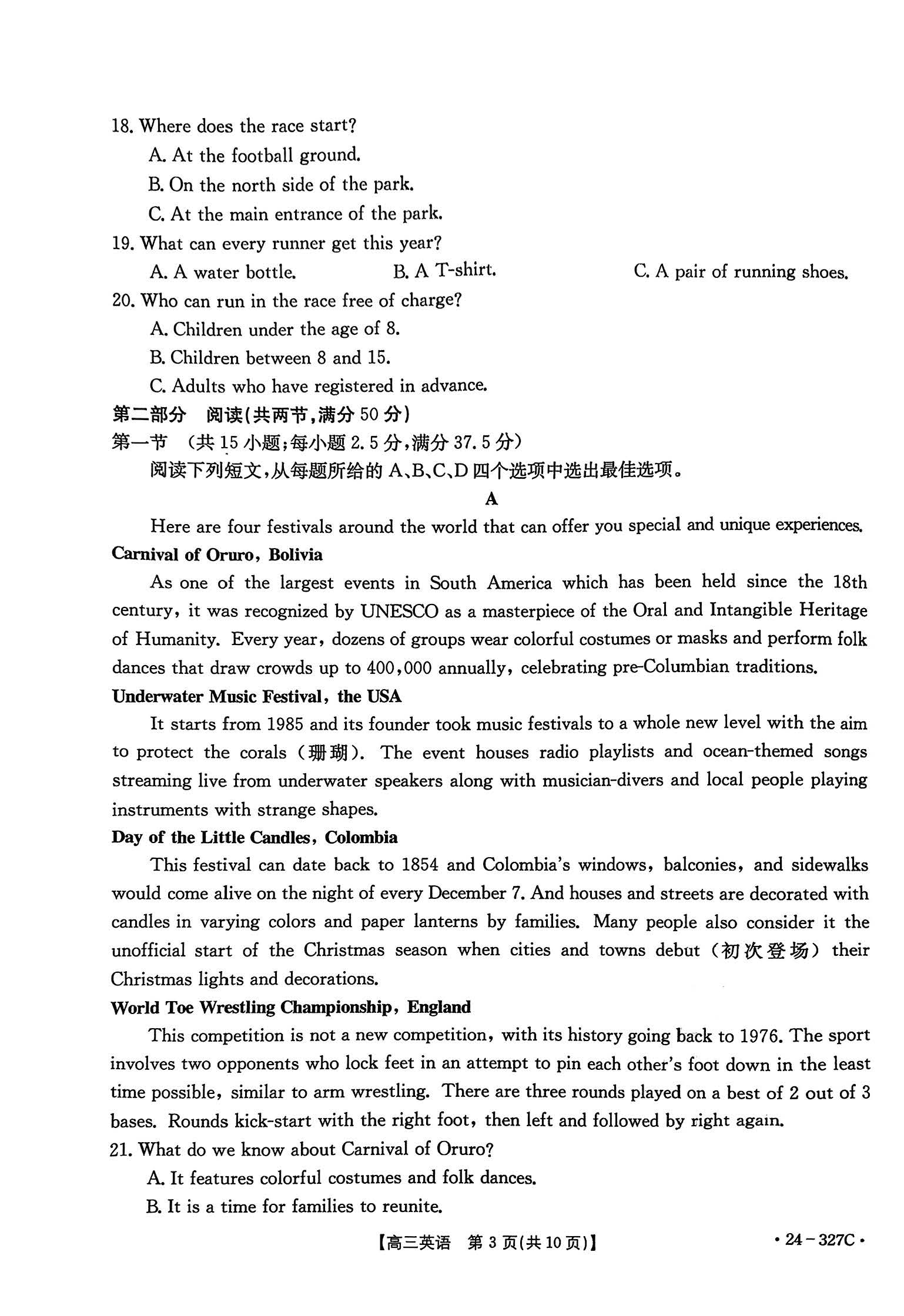 本文整理了河北省金太阳2024届高三2月联考(24-327C)英语试题,分享给同学们下载练习。