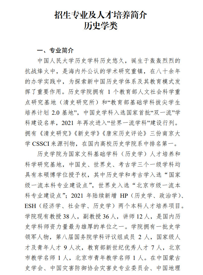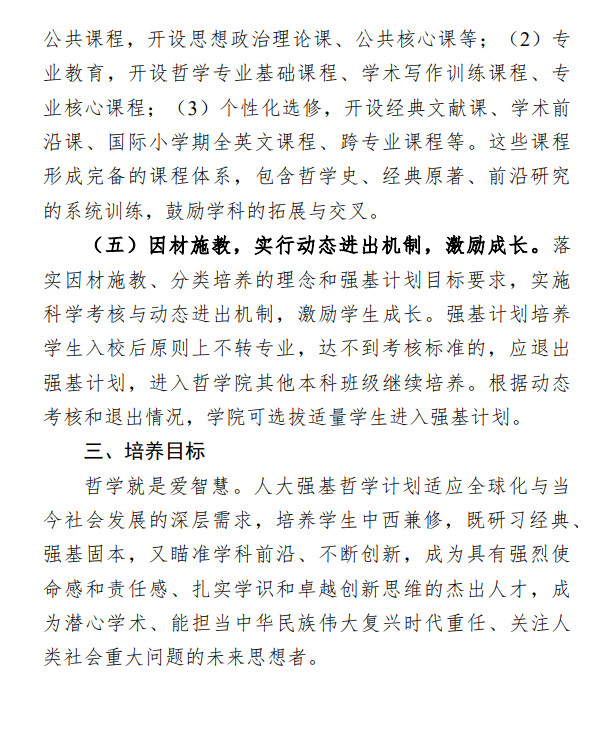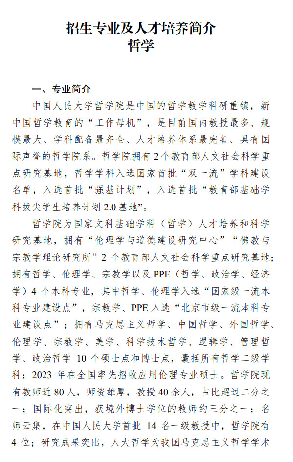 2024中国人民大学强基计划招生专业及人才培养方向?