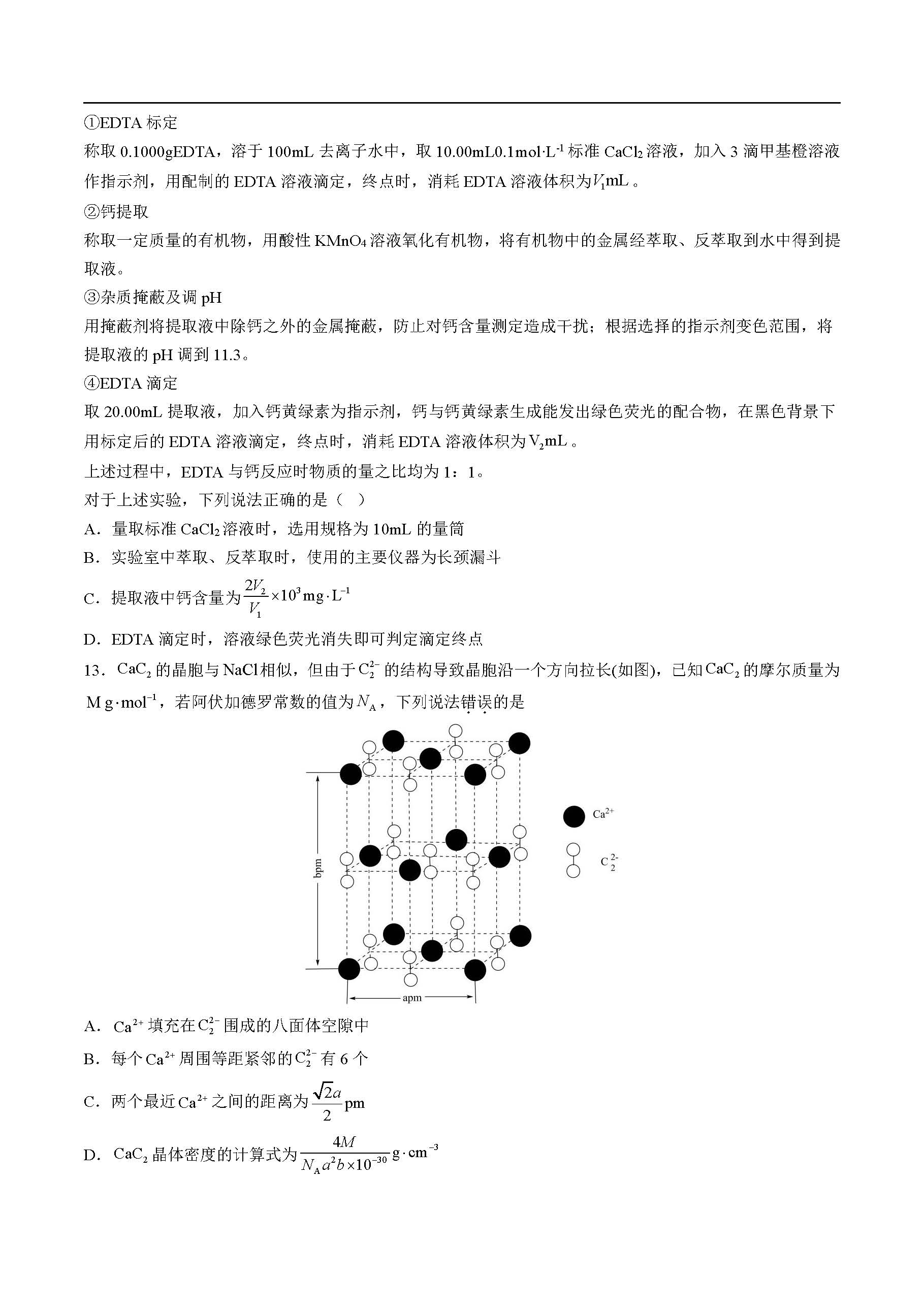 2024年1月九省联考考后提升卷化学试题(江西卷)