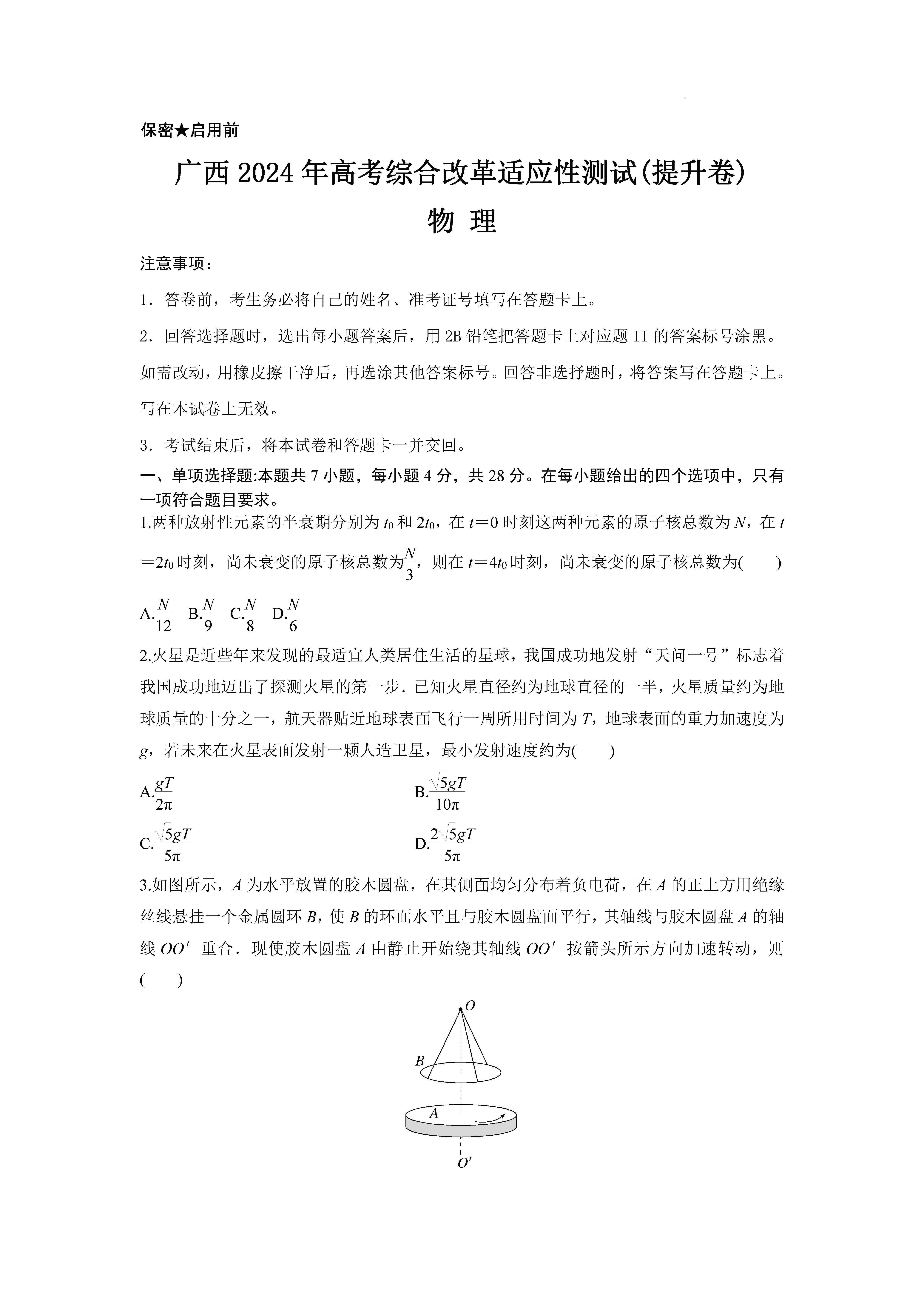 立即下载:2024年1月九省联考考后提升卷物理试题(广西卷)