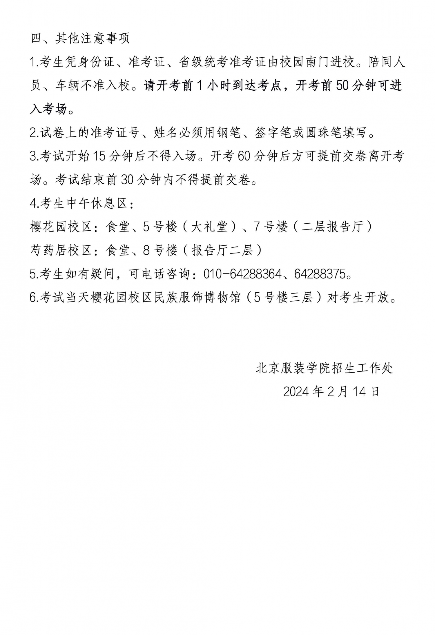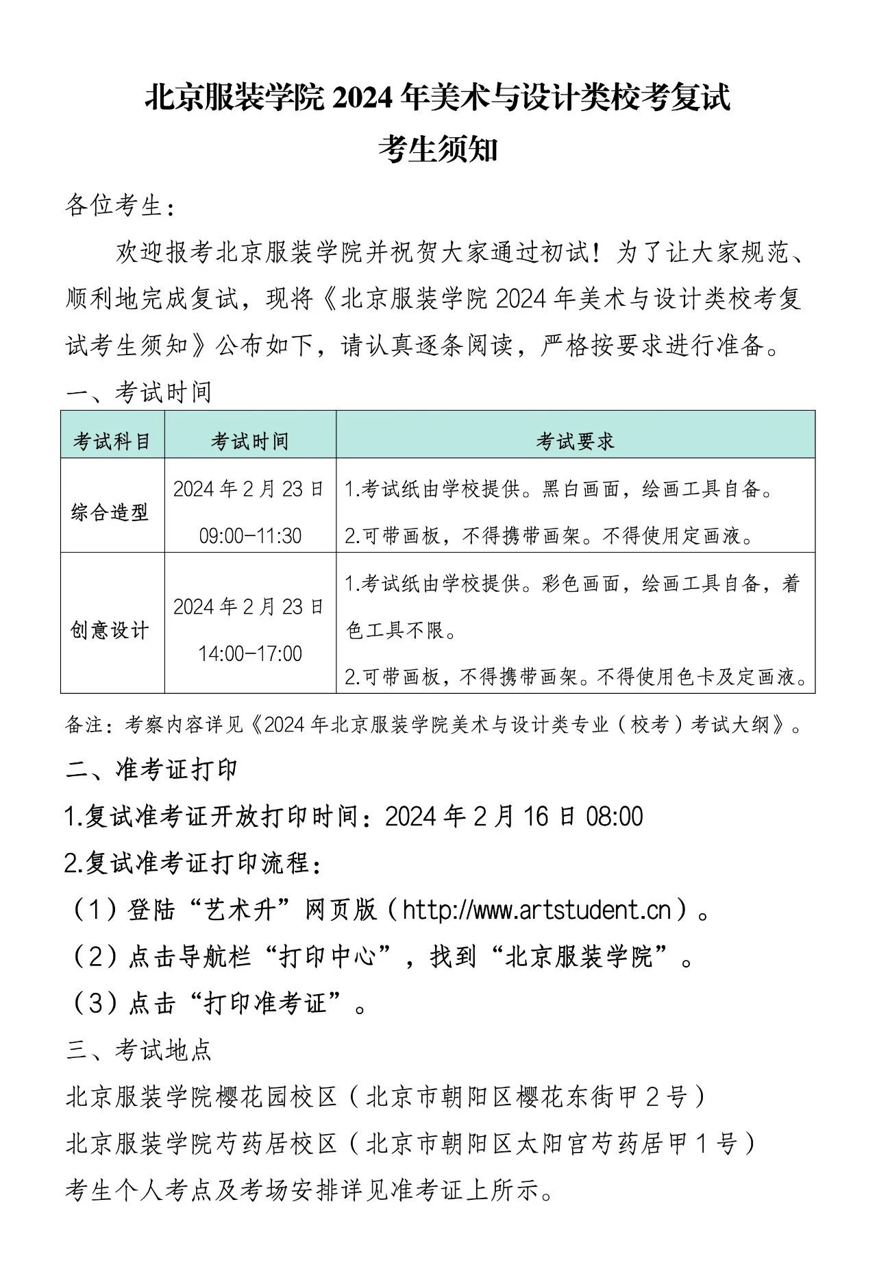 北京服装学院2024年美术与设计类校考复试时间定于2月23日,请考生们做好准备。