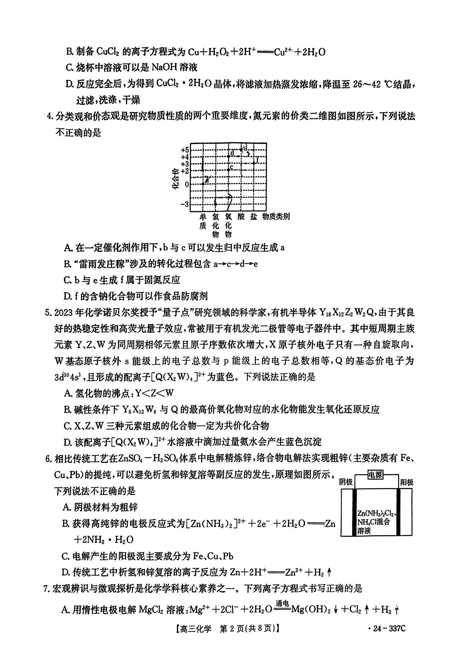 本文整理了福建省2024届高三下学期开学考试金太阳联考(24-337C)化学试题,分享给大家练习参考。