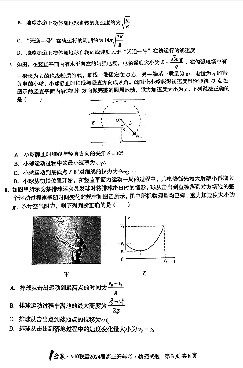 2024届安徽A10联盟高三开年考物理试题及答案