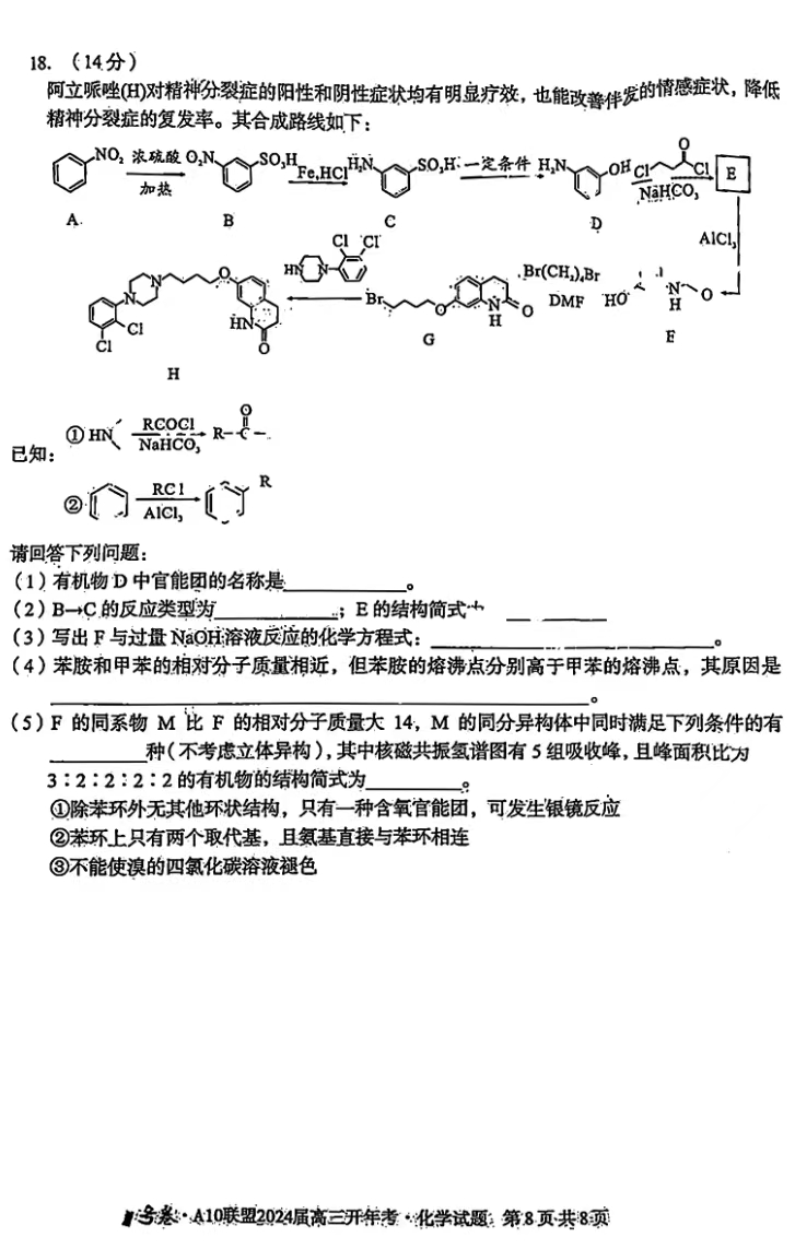 本文整理了2024届安徽A10联盟高三开年考化学试题及答案,分享给同学们下载练习!