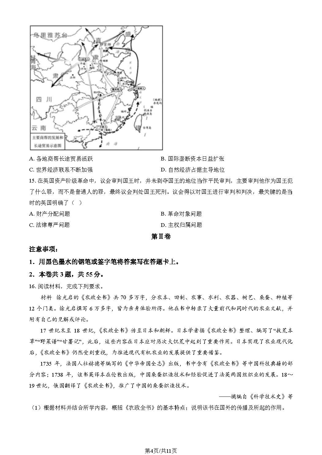 2023高考天津卷历史试题及答案