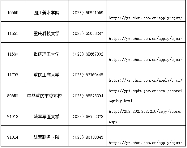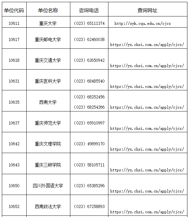 注:报考重庆市外招生单位的考生,请根据报考单位或其所在省教育考试机构公布的时间及方式查询成绩。
