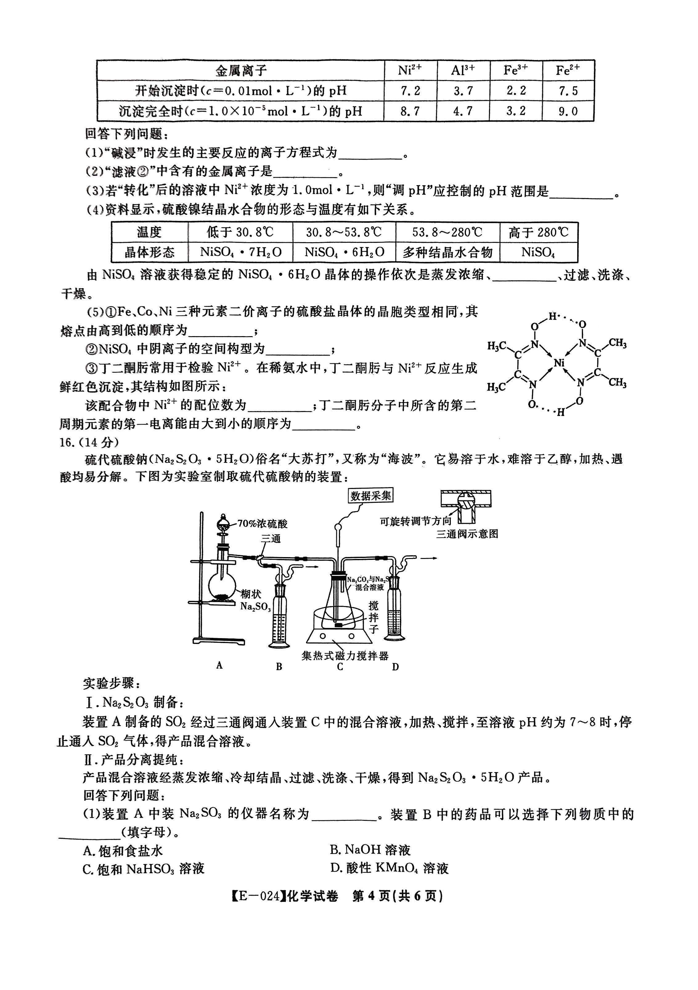 为方便考生练习2024年2月开考的(皖江名校联盟)九江十校2024届高三第二次联考化学试题,本文分享电子版试题答案。
