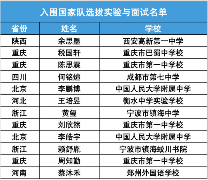 在此恭喜以上同学,祝各位进入国家队选拔同学在接下来的比赛中能够再创佳绩,为国争光!