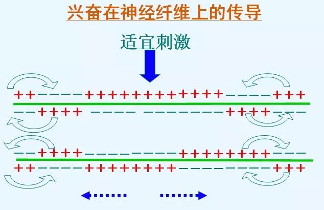 这种局部电流又刺激相邻的未兴奋部位发生同样的点位变化,如此进行下去,将兴奋向前传导,后方又恢复为静息点位。当然,双向传导并不意味着在完整机体内冲动的传导是没有方向性的。