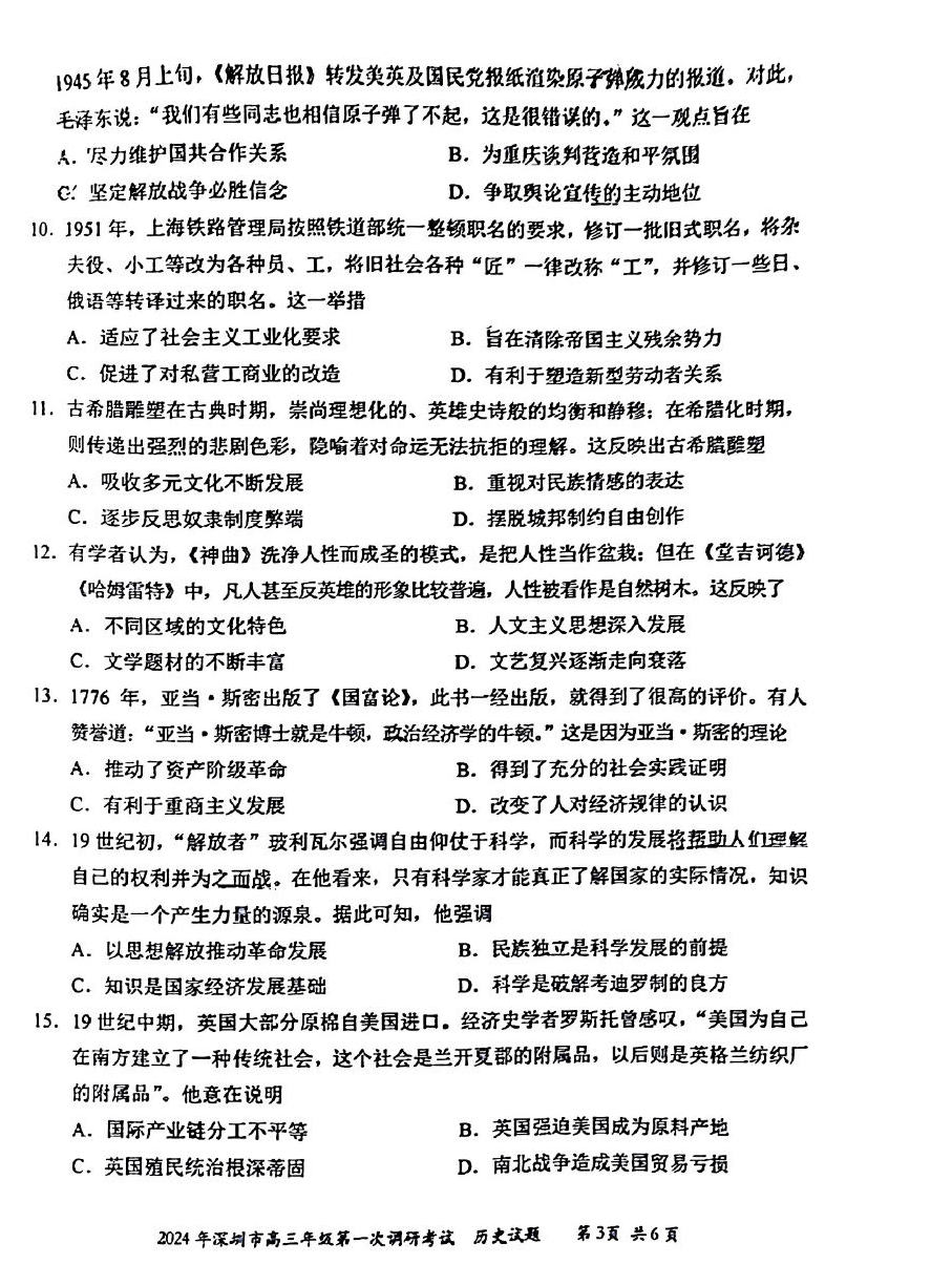 2024年广东深圳高三一模2月28日-3月1日举行,本文整理了深圳一模历史电子版试题及答案,各位考生可以下载练习。