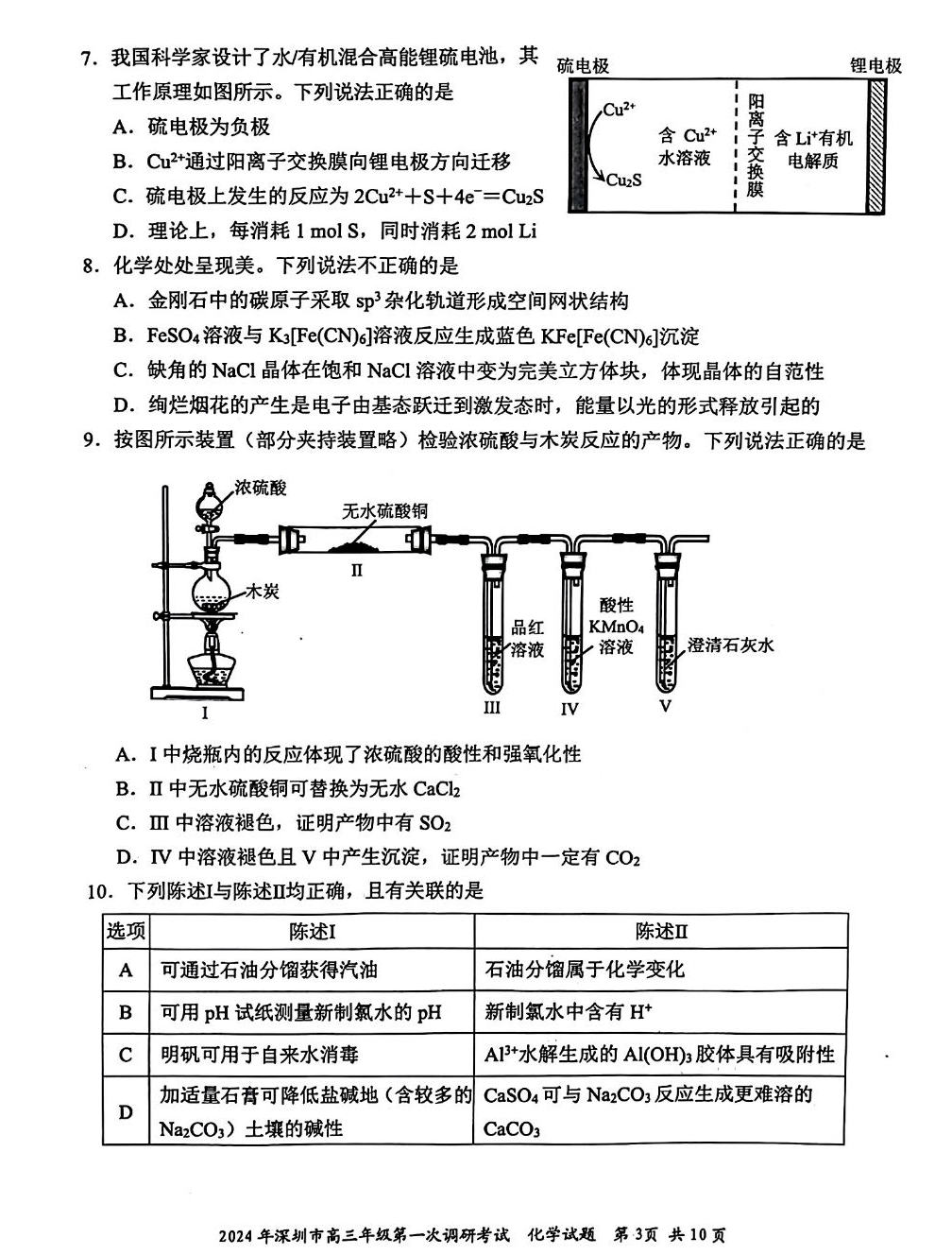 2024年广东深圳高三一模2月28日-3月1日举行,本文整理了深圳一模化学电子版试题及答案,各位考生可以下载练习。