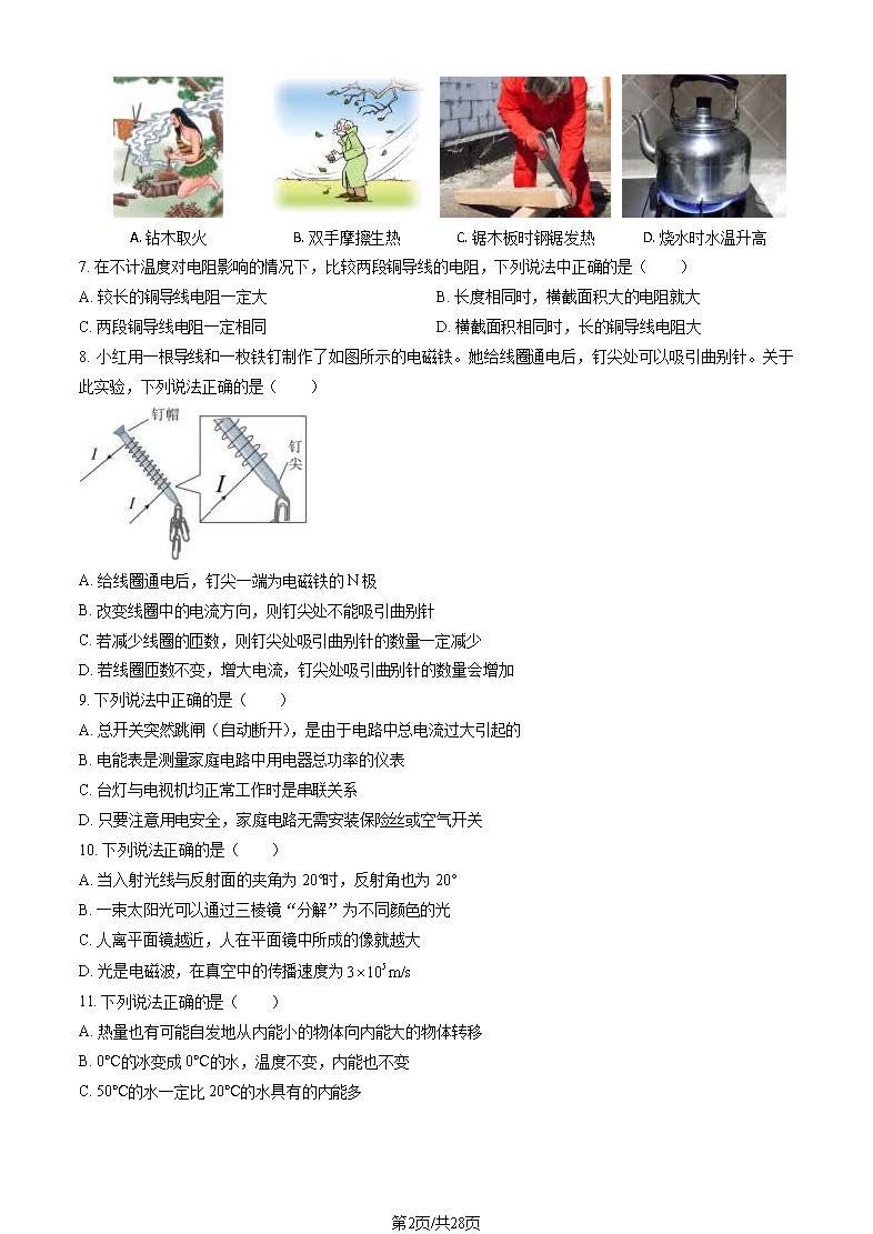 2024届北京清华附中初三2月开学考物理试题及答案